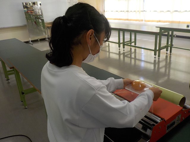 流通サービスコースでは、野菜のラッピング作業に取り組みました。
