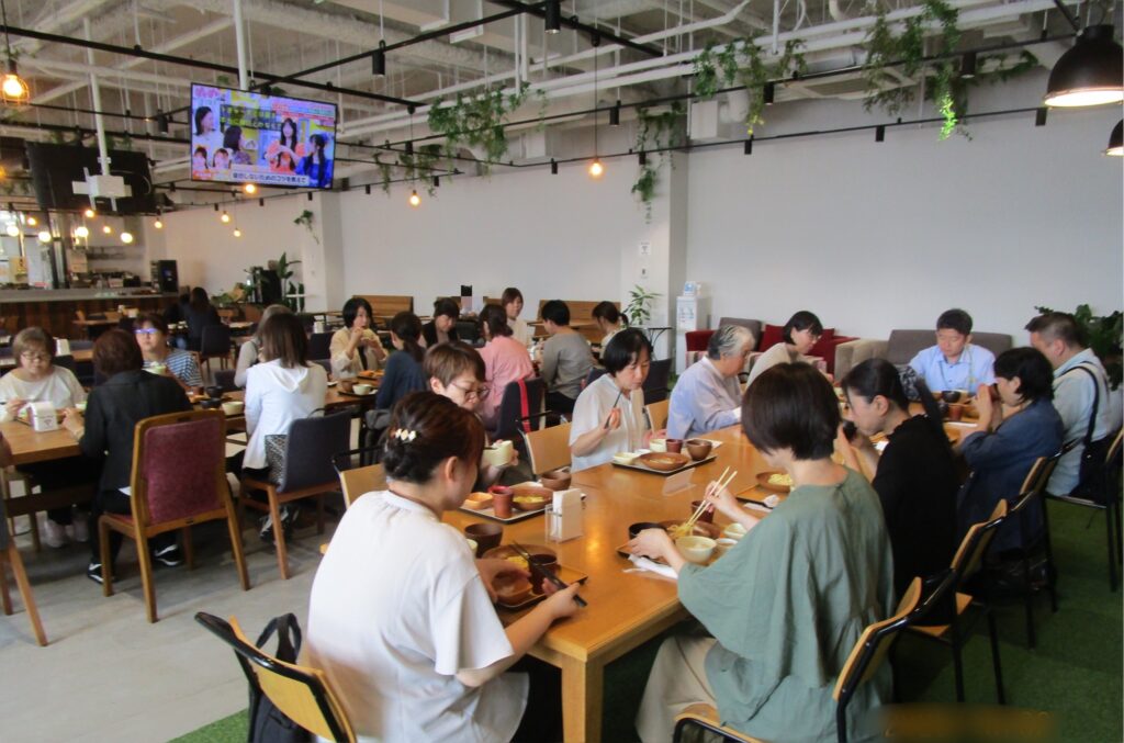 昼食は、「両備ウェルネス株式会社」の皆様が清掃を担当されている店舗にて、おいしい定食をいただきました。衛生的で心地よい空間の中、食事を楽しむことができました。