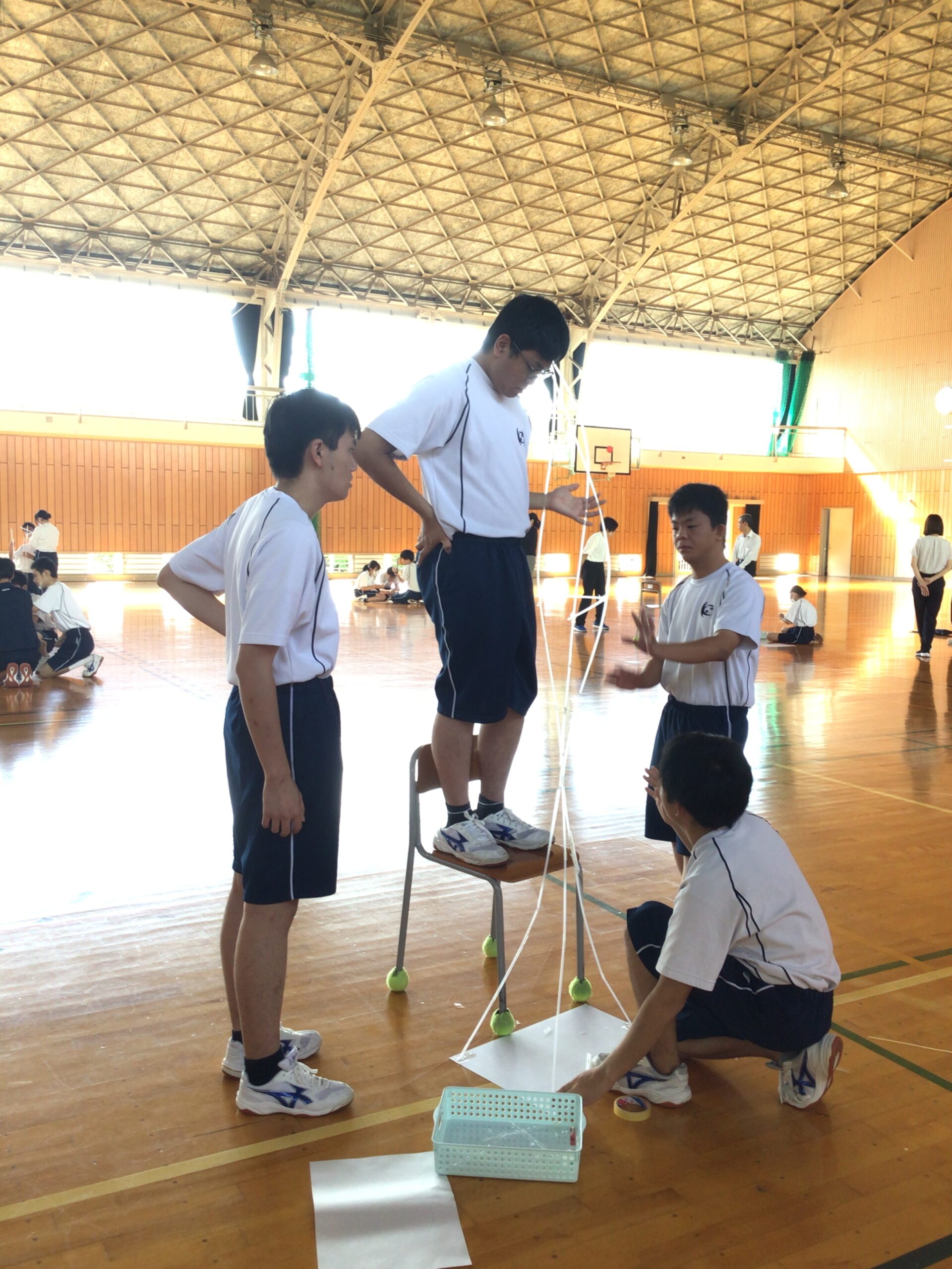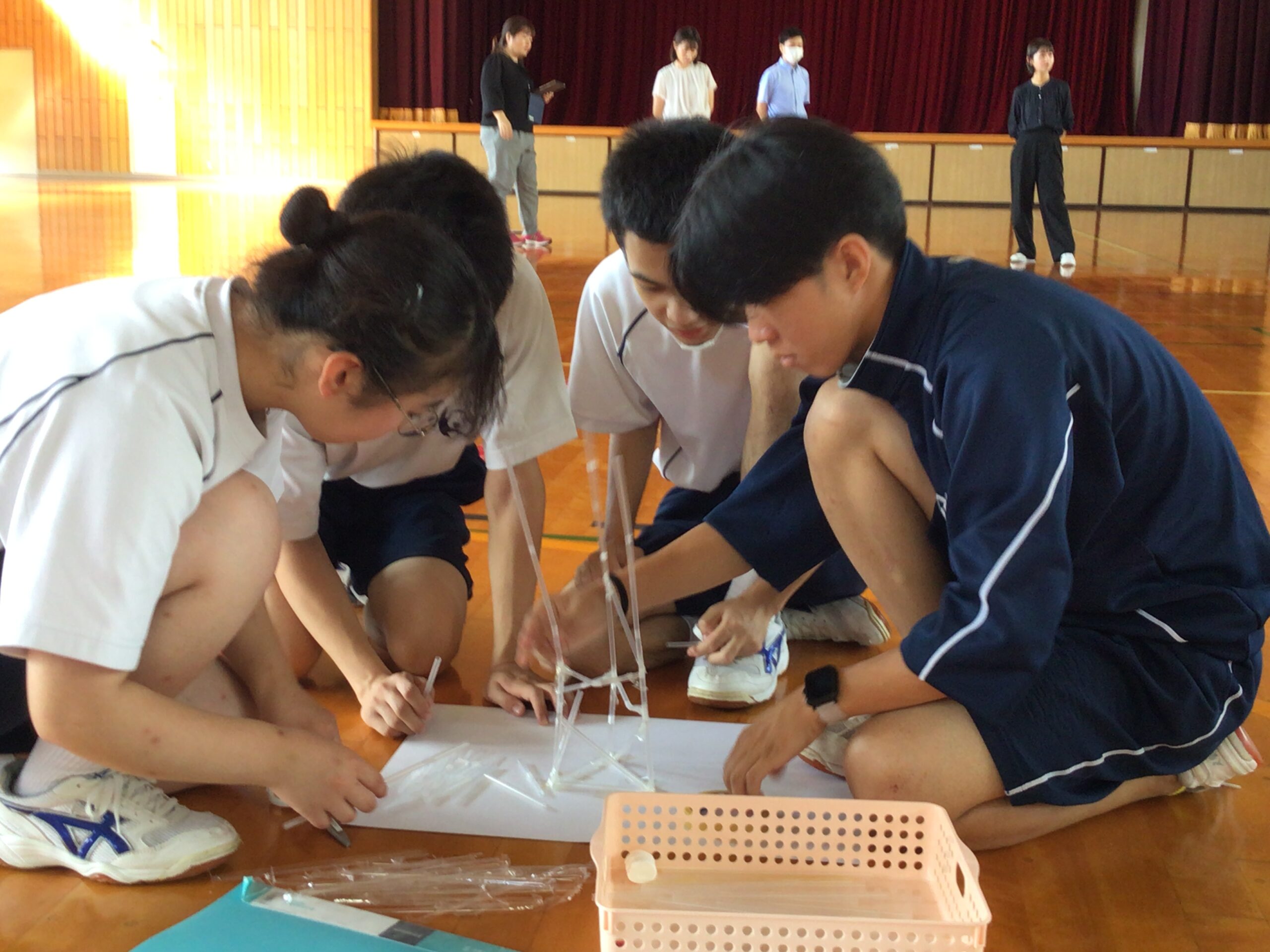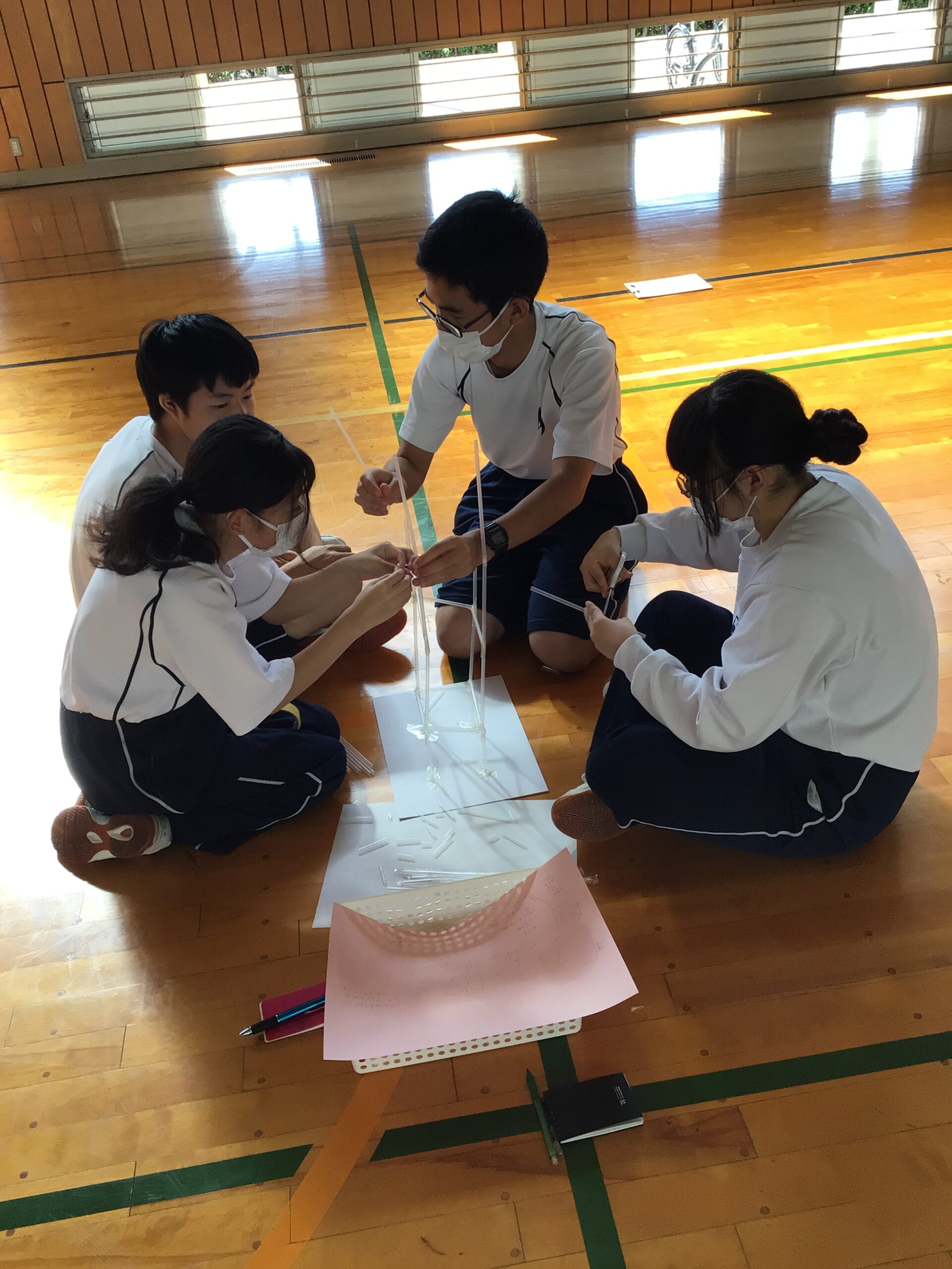 ストロータワーを作りました。 3年生 2025.10.10 3年生の総合的な探究の時間にストロータワーを作りました。グループで作戦会議を行なった後に、制限時間30分で協力しながら作りました。作戦通りにできたところや、途中で倒れてしまったところなどがありましたが、楽しい時間となりました。
