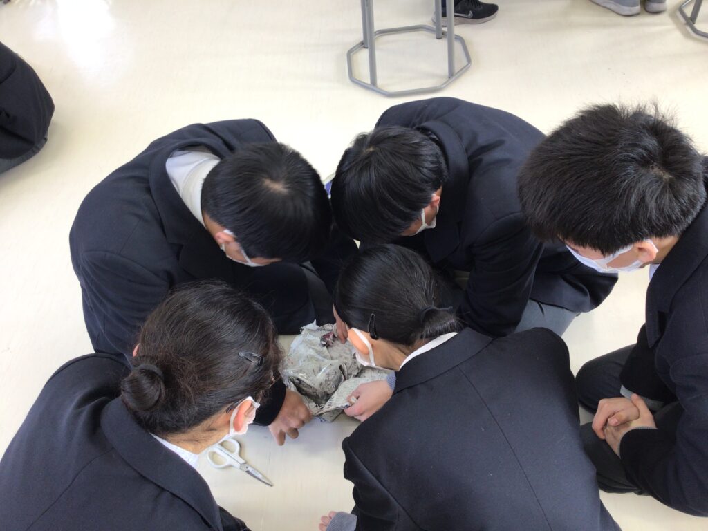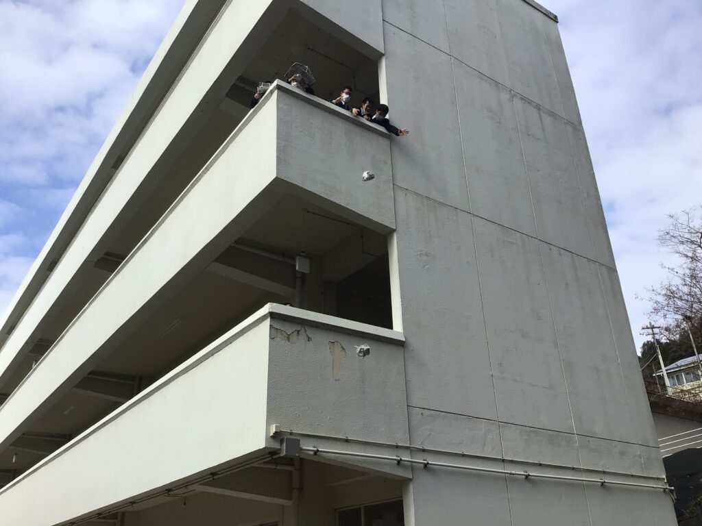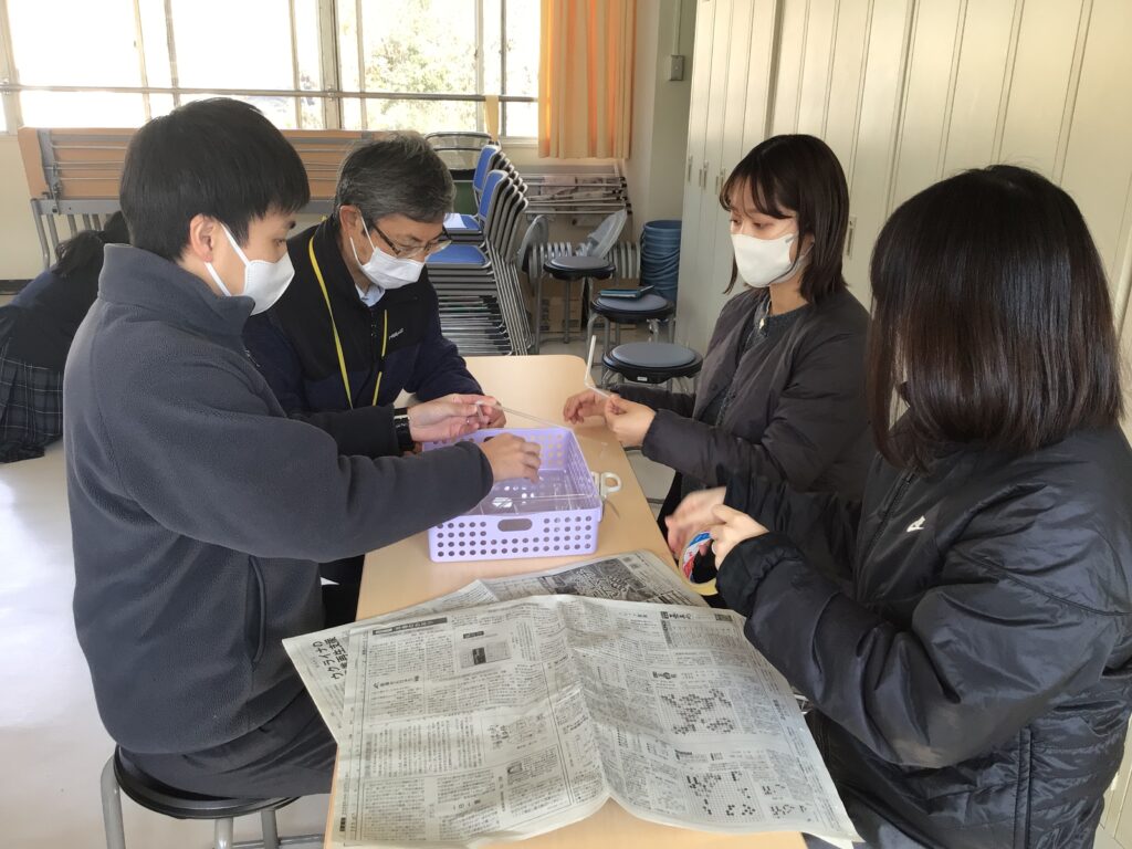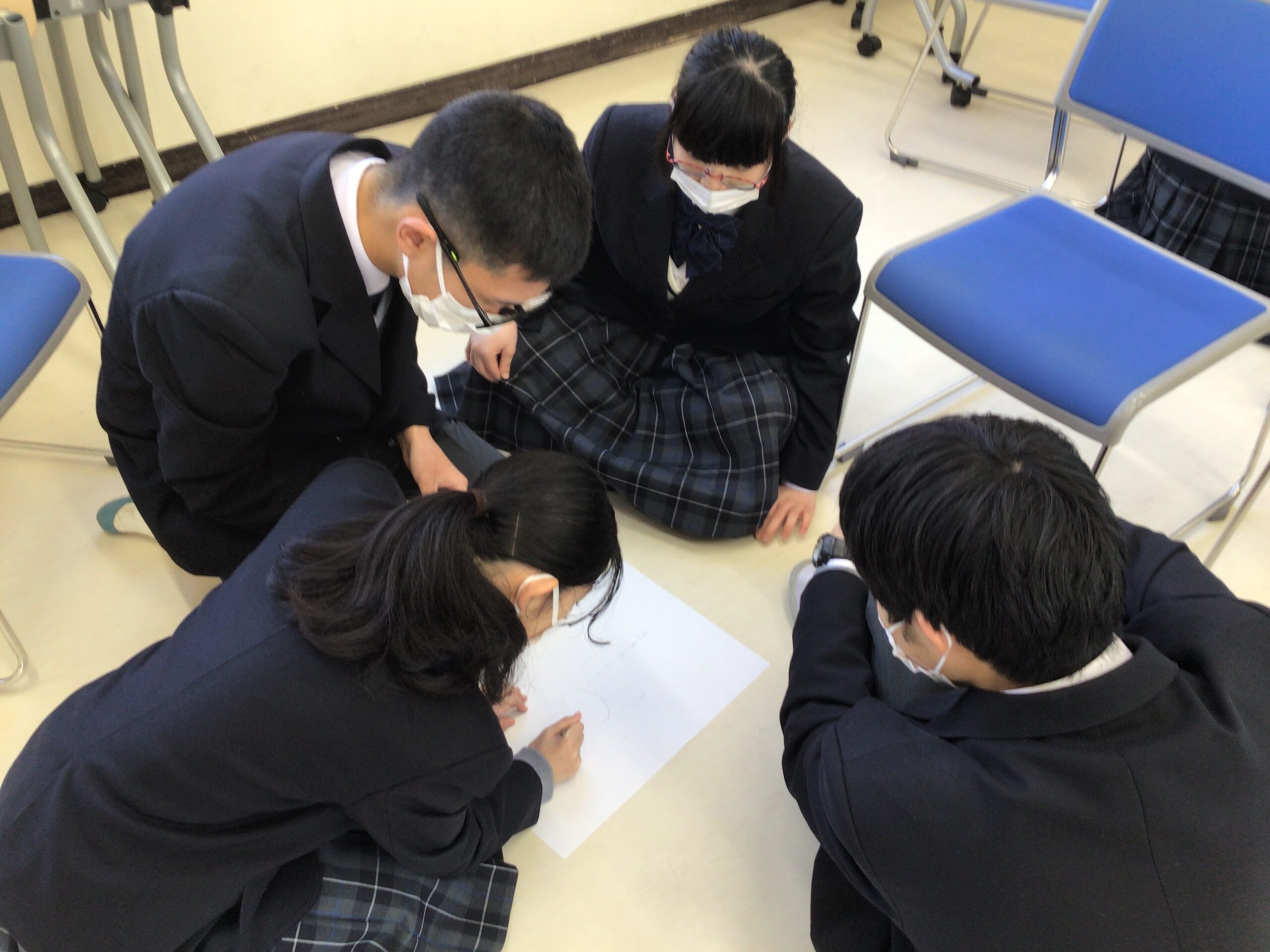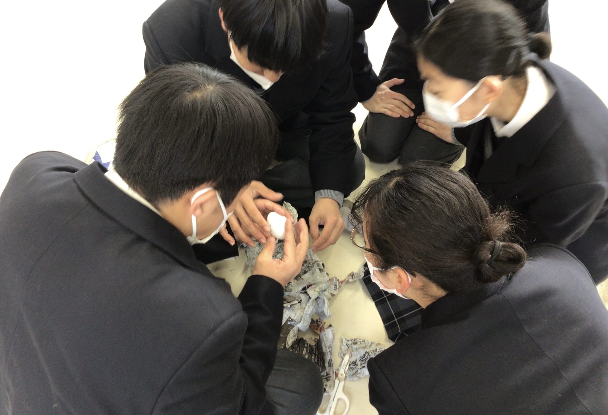 エッグドロップ〜先生の夜ご飯を守れ!! 3年生 2026.02.09 3年生は総合的な探究の授業で、2学期の「ストロータワー」の続き、「エッグドロップ」に挑戦しています。 新聞紙とストローとテープを使って、どのような構造にすれば、卵を割らずに落とせるかグループで話し合いました。 実際に3階から卵を落とすときには、わくわくする様子や不安そうな様子が見られました。 今回は生徒5グループのうち、3グループが卵を割らずに落とすことができました。 教員チームも見事成功でした! 次回は、今回とは違う構造を考え、チャレンジする予定です。