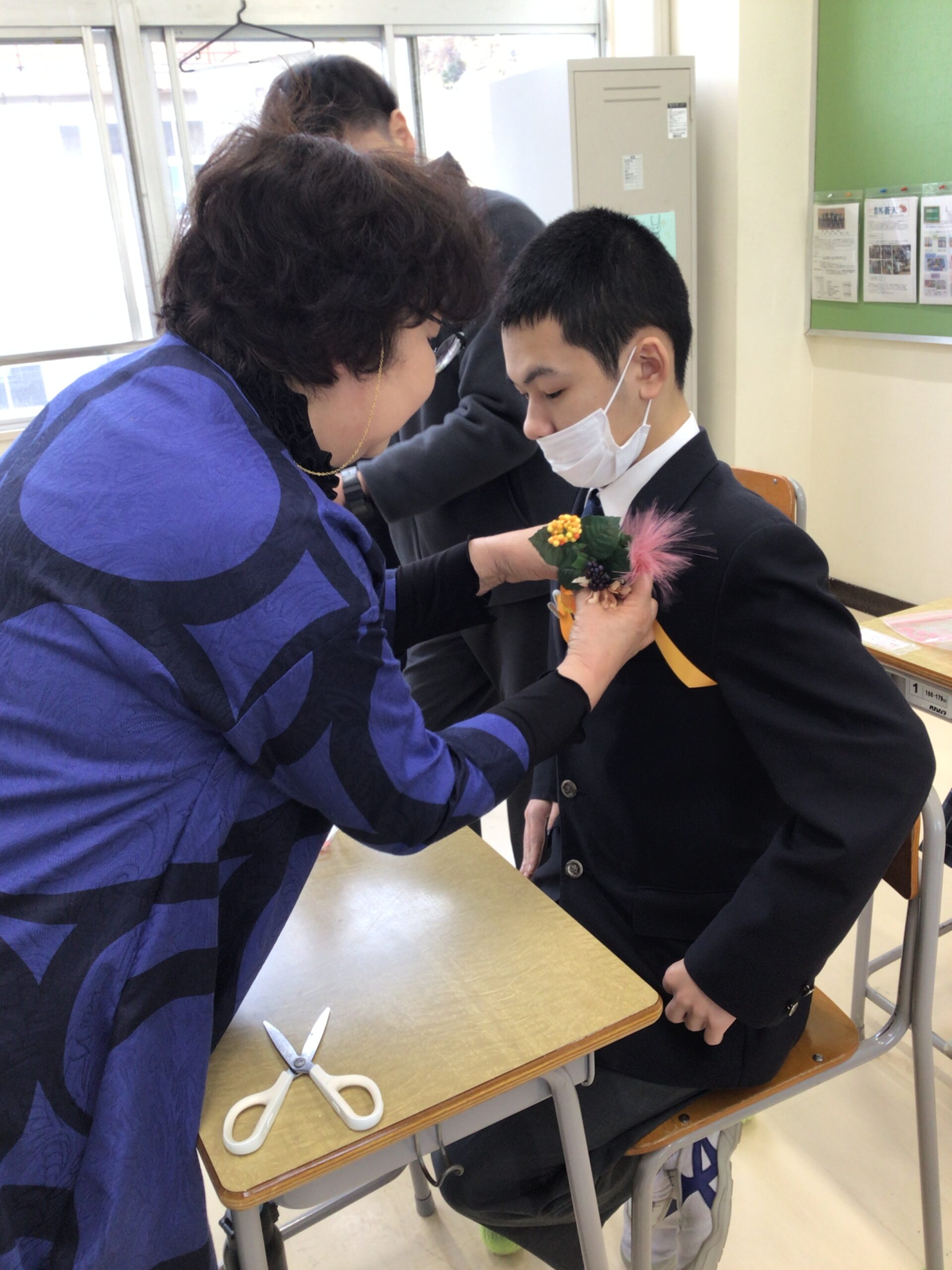 3年生 コサージュ作りをしました 3年生 2026.03.02 卒業がいよいよ近づいてきた3年生。2/27に、卒業式で着用するコサージュ作りをしました。先生の説明を聞きながら、皆個性あふれる綺麗なコサージュを作成することができました。