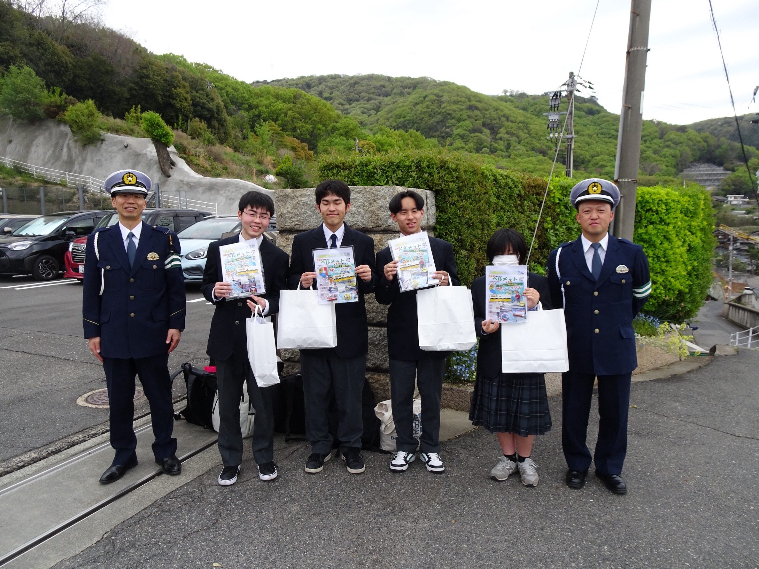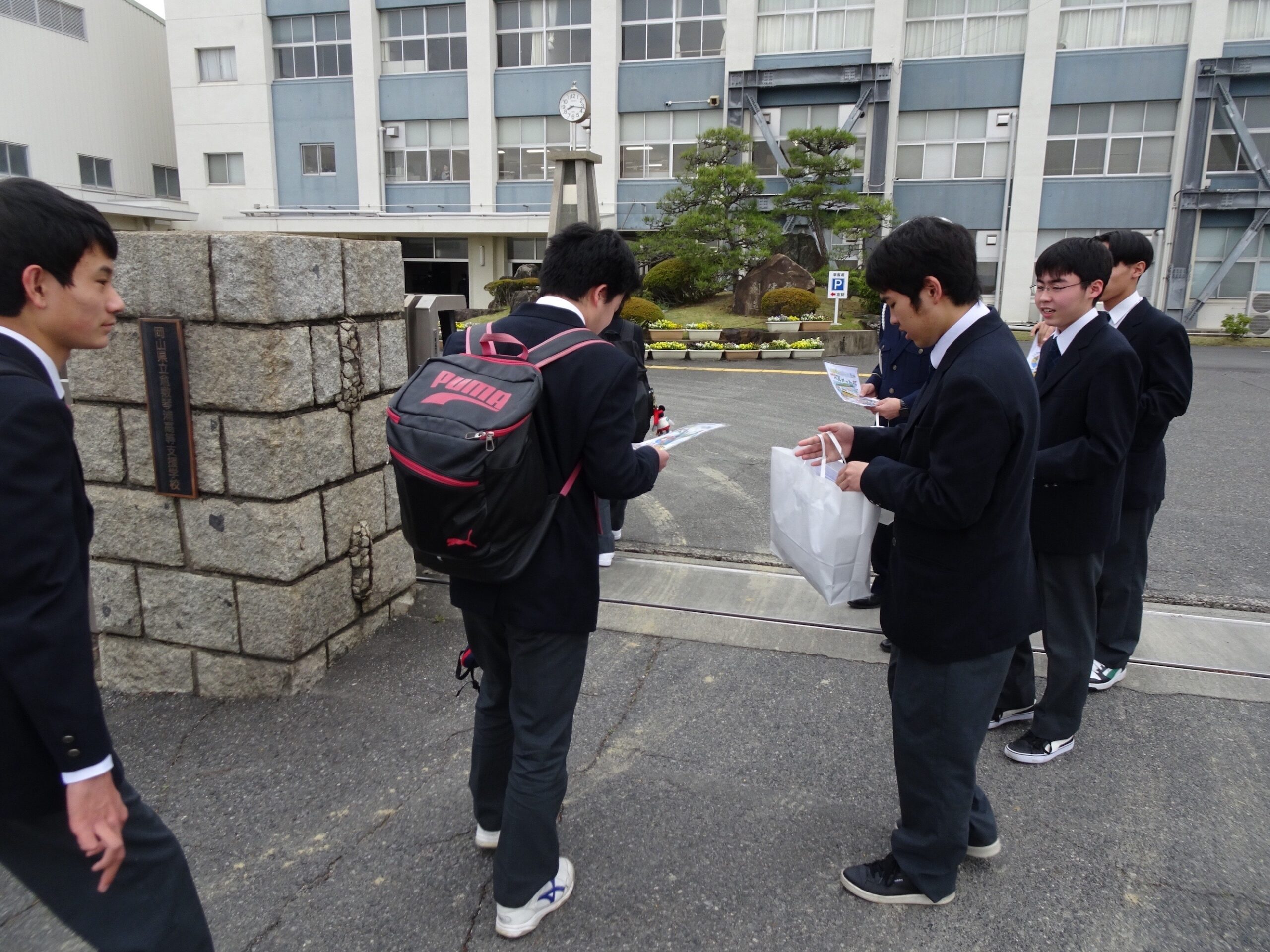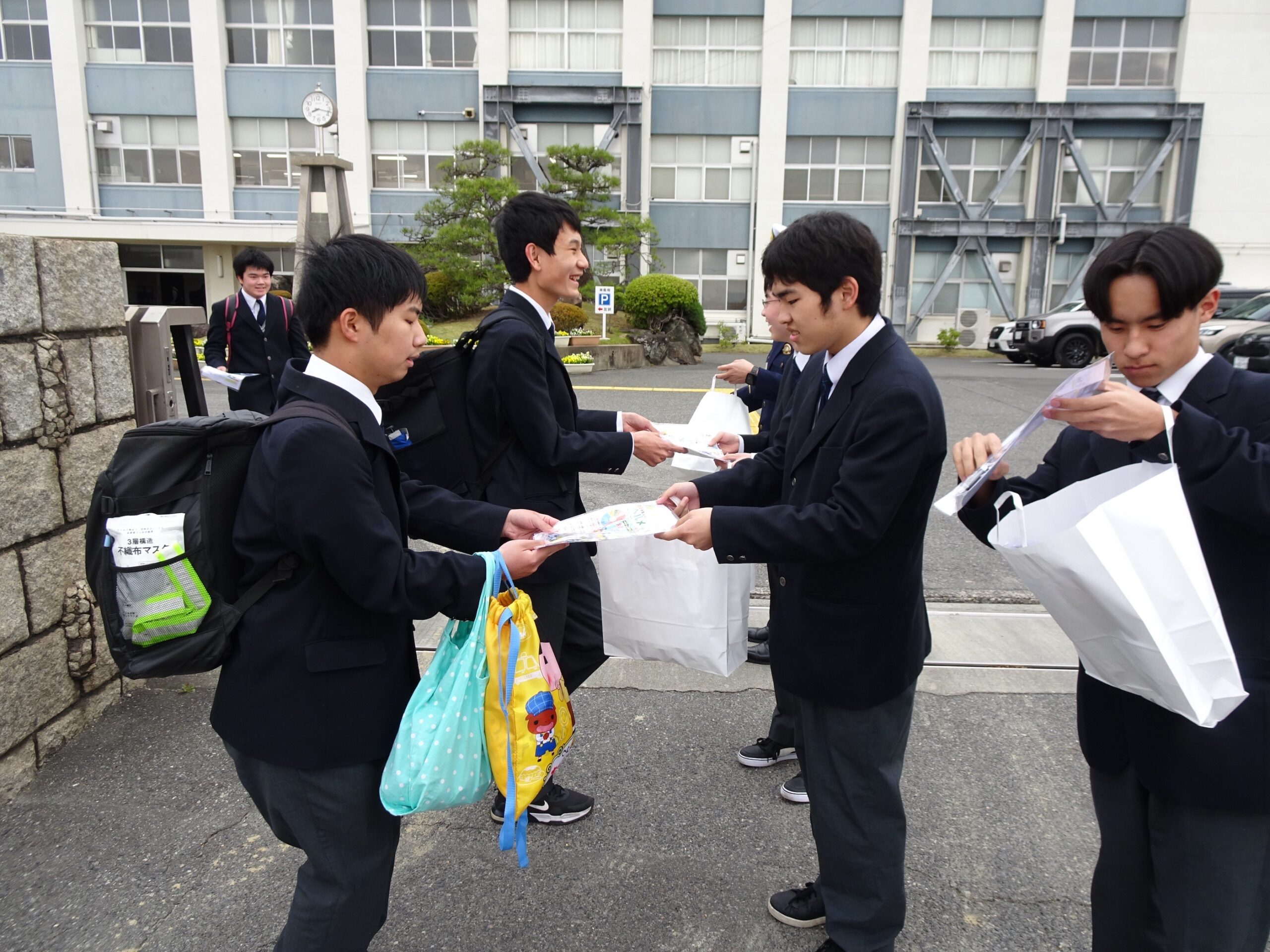 児島警察署×琴浦高等支援学校:自転車マナーを再確認!交通安全運動に参加しました。 日々の琴浦 2026.04.13 私たちは児島警察署と協力して、交通安全運動に参加しました。 今回の活動場所は、私たちの学校、倉敷琴浦高等支援学校の校門です。 バス通学や自転車通学をする生徒にとって、あらためて「安全に道路を利用する」ことの重要性を肌で感じることができた一日となりました。