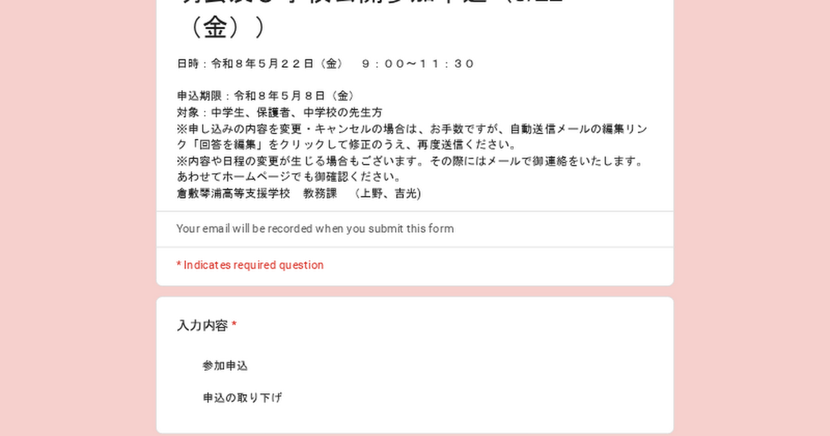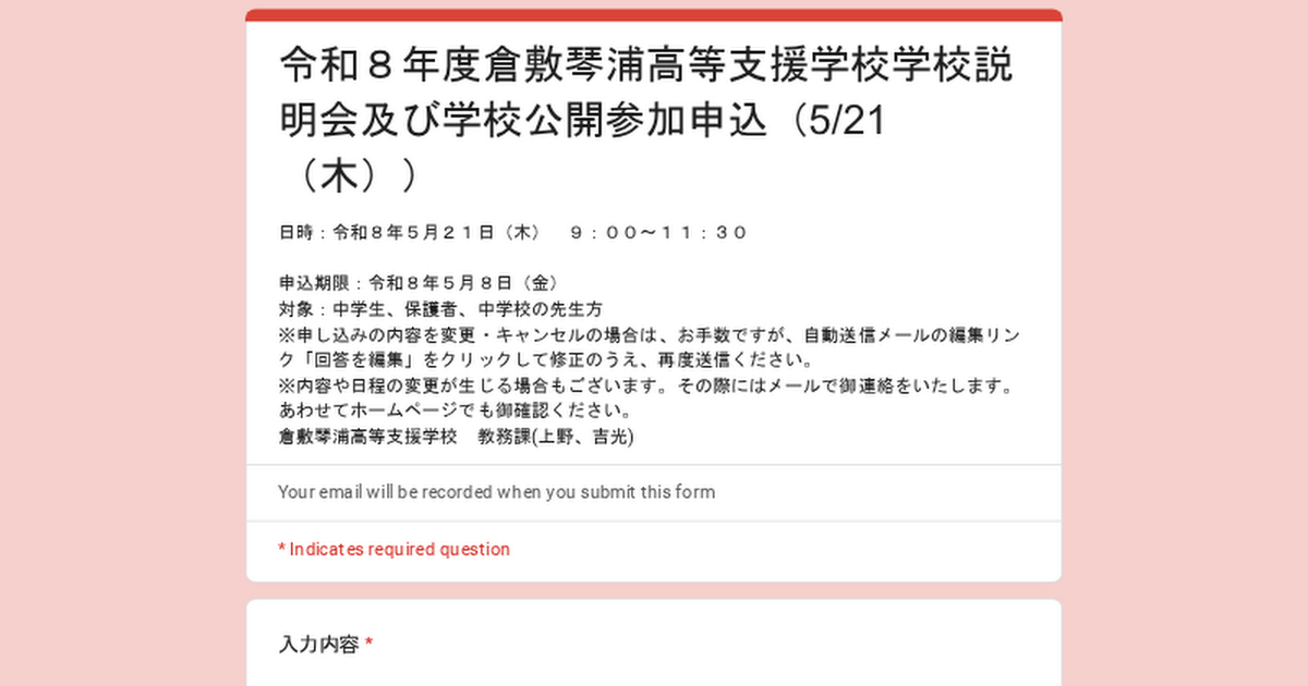 岡山県立倉敷琴浦高等支援学校の学校概要を説明したり、授業を公開したりすることにより、入学を希望するなど興味関心のある生徒や保護者、学校関係者に本校の教育に関する理解啓発を図る。