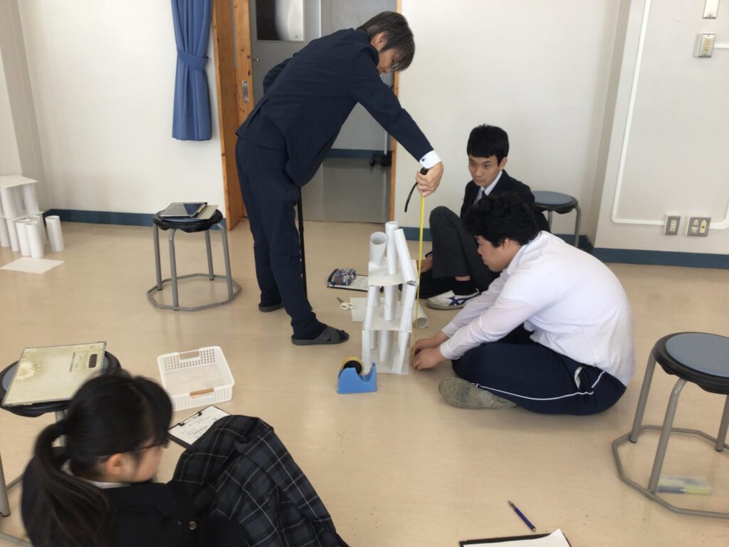 2回のチャレンジが行われ、1回目が終わった後の「作戦タイム」では、「次はこうしよう!」「ここを補強すればもっと高くなるはず」と、どのグループも熱い議論を交わしていました。