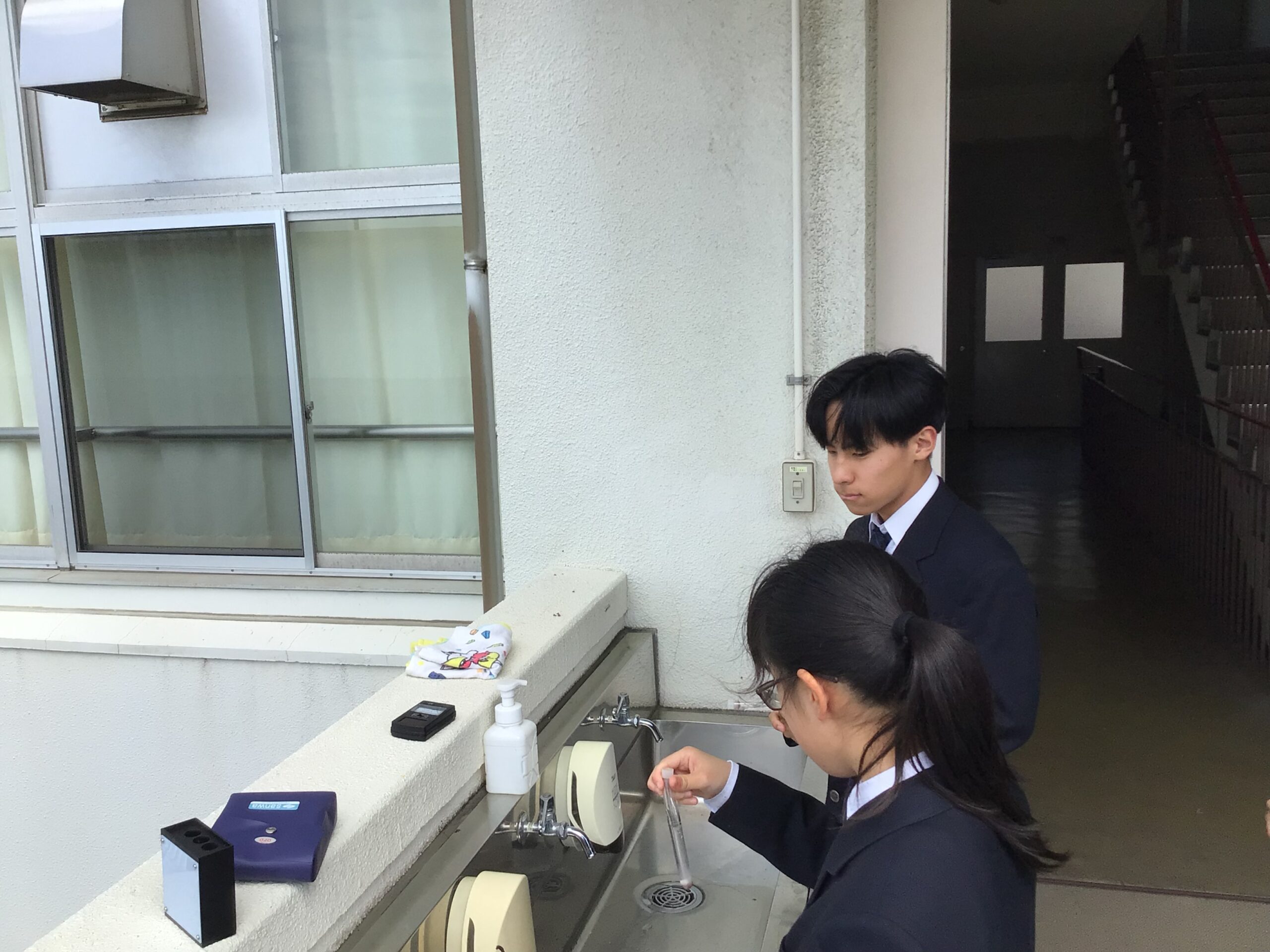 水質検査:安全な水を届けるためにまずは、手洗い場や給水所の水質検査です。